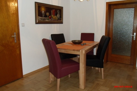 mit Durchgang zum Wohnzimmer und zur Kochküche. Essgeschirr, Besteck und Gläser sind in ausreichendem Maße vorhanden. Der Esstisch verfügt über eine Ausziehfunktion. |